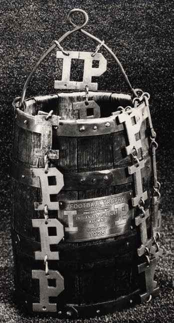 In 1925, it became the most-well known trophy in college football history when Boilermaker & Hoosier alumns decided to pass it back and forth between winner of their annual gridiron clash. Despite Saturday’s win by IU, Purdue leads overall: 56-26 w/three ties, including the first game, which ended 0-0.