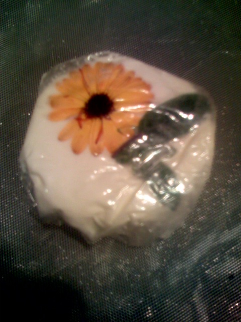 I also bought a chevre round. I haven’t tasted it, but it was too cute to pass up. Farmgirl Lisa Cooperband, who launched Prairie Fruits Farm with her husband, decorates these little rounds with herbs and edible flowers.