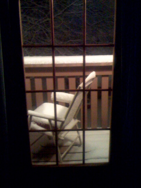 The iFarmer took a shot of my balcony chair, covered in a fluffy white blanket of powder.