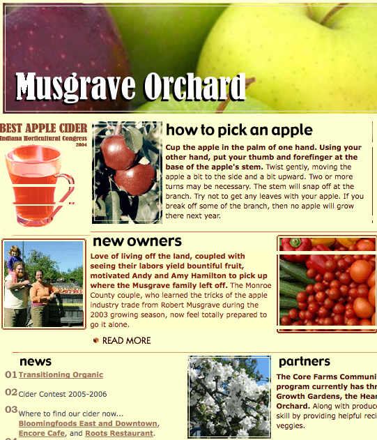 While reading up on developing a fruit orchard at The Farm, I came across this very detailed story about a couple who six or so years ago took over Musgrave Orchard north of Bloomington, Ind.