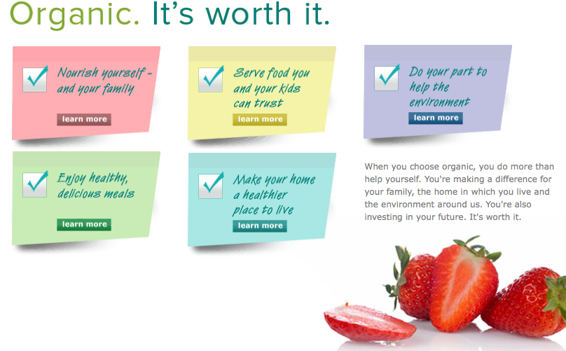 And let me just say, that I’m skeptical of the the Organic Trade Association’s new $500,000 Internet campaign to dress up the word and present a new slogan, “Organic. It’s worth it.”