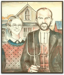 I’m loving that Matt and his Farmgirl bride Beth Blessing have combined their talents – organic farming and nutrition – to launch this operation. [Am also loving their personalized version of American Gothic.]