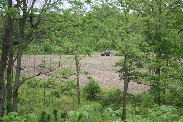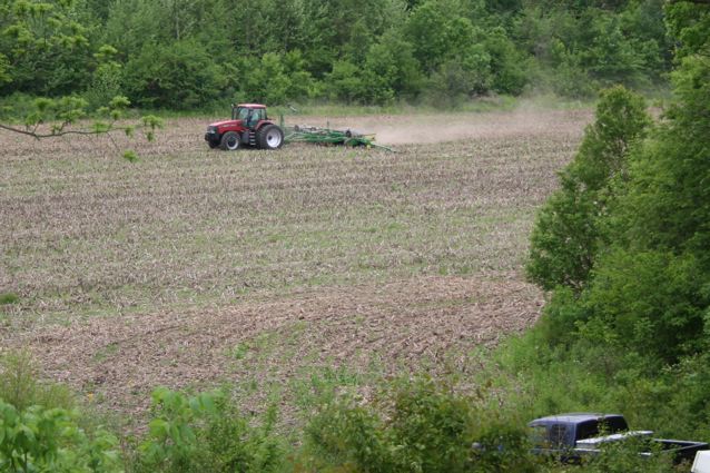He was in and out in less than a couple hours. It probably took him longer to get the tractor down the steep hill and into the field than to plant the whole lot.