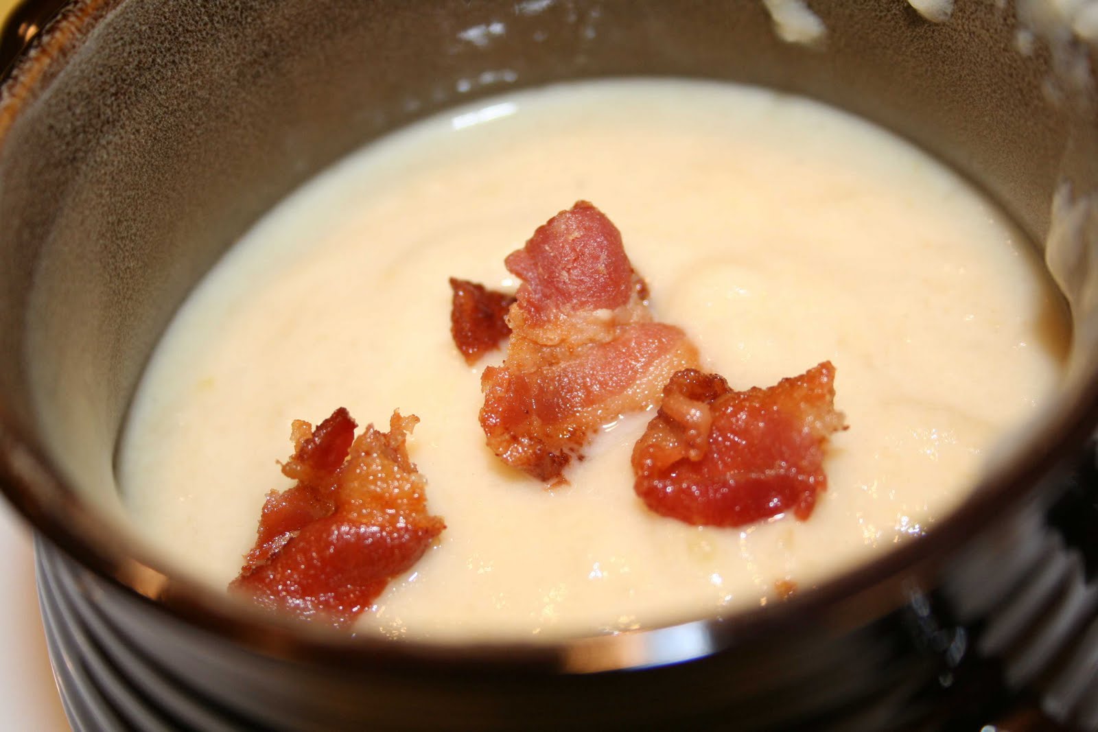 We crumbled a little bacon from this morning’s breakfast on top. [The iFarmer, in his second bowl, mixed in some steamed broccoli.]