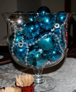 Hot buttered spiced cider (w/Calvados – apple brandy for the adults). I make this every year. But I used lemon peel this year after I learned a guest is allergic to oranges. I think I’ll go lemon peel going forward. I also tried a half-and-half approach: half cider and half apple juice. That made the drink much more mild.