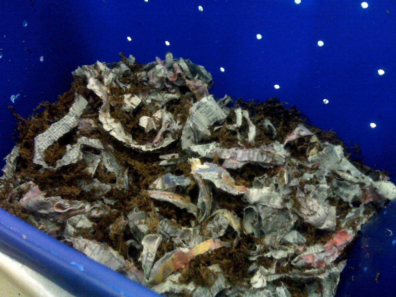 2. Tear up strips of newspaper until you can’t see the bottom of the tub.