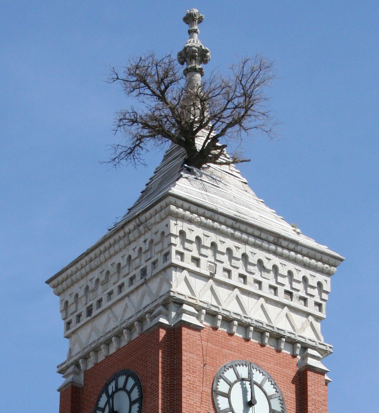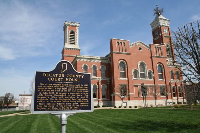 I don’t remember ever being in Greensburg, which is the heart of Decatur County, and is home to a unique courthouse. If I’d been here before, I’m pretty sure I would have remembered the tree growing out of the courthouse roof.