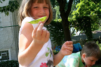 Our mission was to harvest the box of radishes. But when we got to the school, it was clear that the lettuce was more than ready to be picked. And to the delight of our future farmkids, a good number of sugar snap peas were prime for picking and immediate eating.