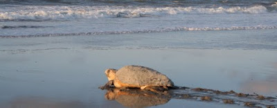 | Loggerhead turtle leaving her nest on Folly Beach. Photo by the iFarmer |