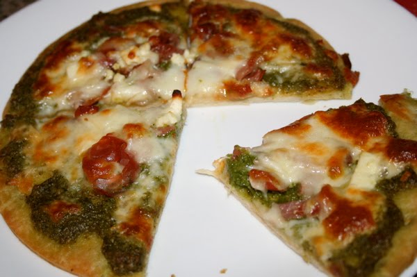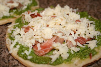 Last night I made arugula pesto pizzas for me and Sim. The crispier the crust the better with these. Of course, it’s hard not to like anything topped with prosciutto. Before baking, I sprinkled the individual crusts with mozzarella and feta.