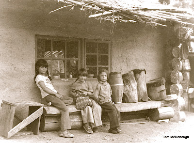 I wasn’t the only kid to make this annual summer trek to the mountains to visit a parent. I have memories of many of these itinerant children – some memories more vivid than others. I knew the girl in this photo on the left, though she was older so I don’t remember us playing together much. This is her dad’s hogan where we were escaping the mountain sun.
