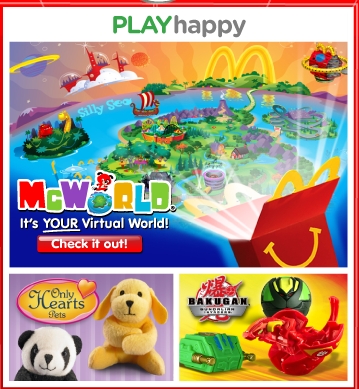 Her reasons are just as valid. The Happy Meal menu board outside clearly indicated that the toys being offered were mini Only Hearts Pets (for girls like her who adore cute little animal toys) and Bakugan (for boys except my son who would prefer to get the Only Hearts Pet to give to his sister). Those toys, I’ll note, are still being promoted on the McDonald’s Happy Meal site.