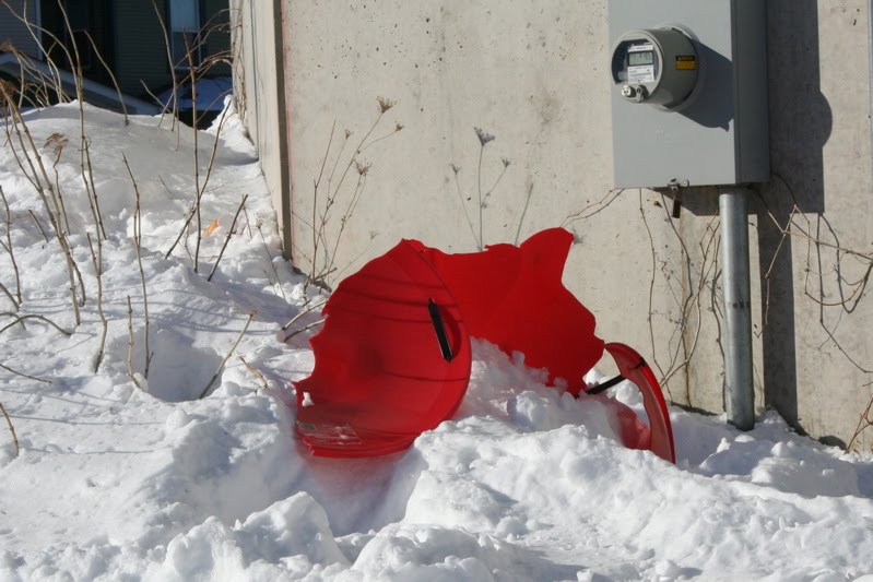 Seems to me, the biggest casualties are the sleds. They’re scattered all around the hill, abandoned near trash cans and in pieces at every entrance, exit and at the base of the slope. There’s an especially large concentration near the snow jump.