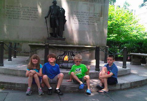 We didn’t plan enough in advance to line up tickets to see the Liberty Bell (or so we thought. Turns out we could have just walked in). So we just walked around a bit, took in all that we could at Washington Square Park, then had Philly cheese steaks and hot dogs on benches in Independence Square before piling back into the van for the last 90 minutes.