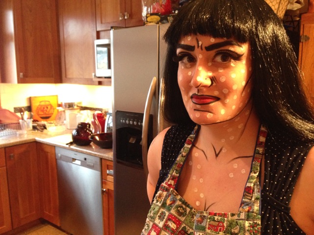 No pop art party is complete without a real live Pop Art Girl, this one my sister, who has a talent for makeup.