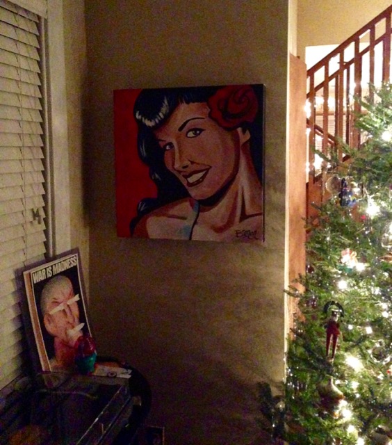 Because one of my favorite artists, Brenan Sharp, was in between galleries, I was able to borrow 20 of his painting for a unique Pop Up Pop Art Holiday Party.