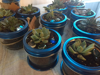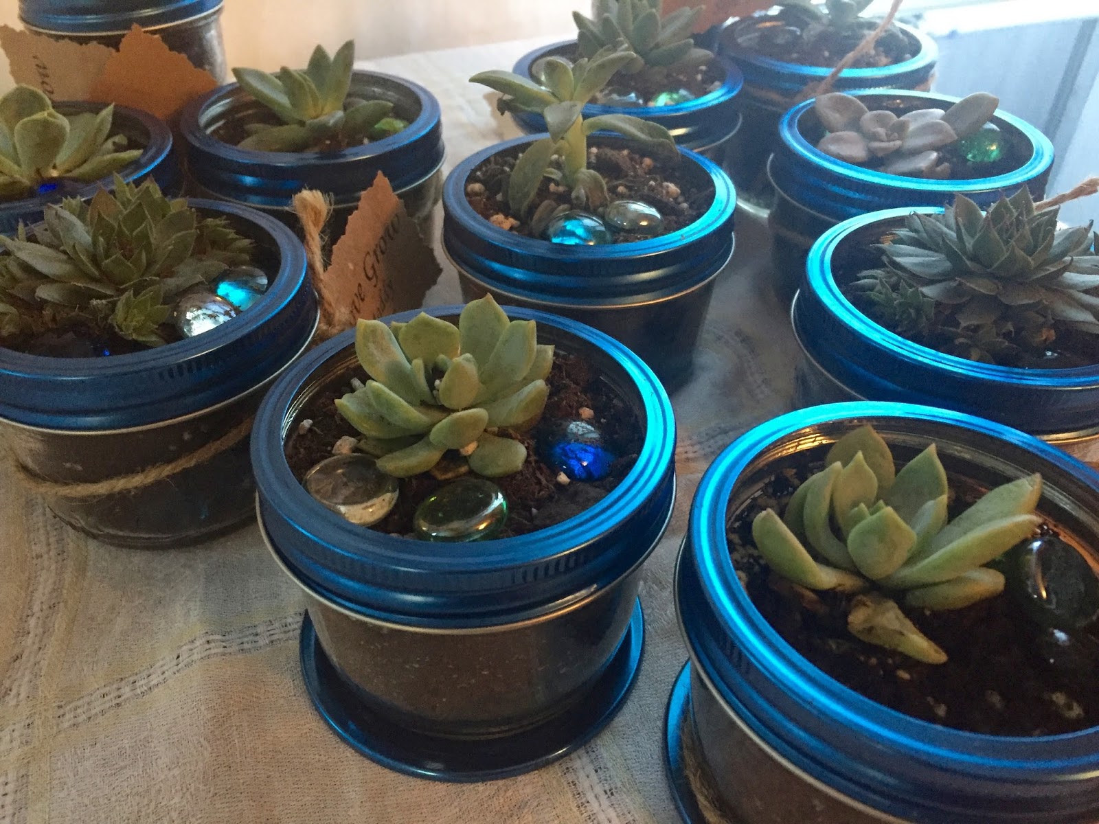 We also served cucumber water in a large Mason Jar dispenser, had a punch bowl full of coffee/chocolate ice cream punch and had an assortment of finger foods and tables full of fresh flowers.