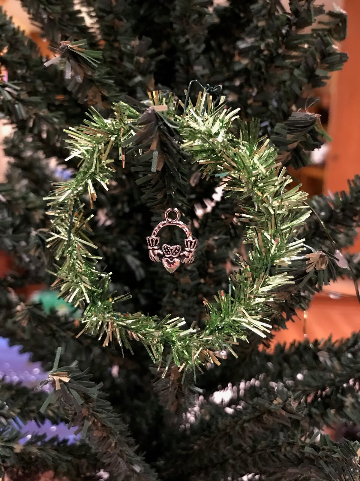 The party favor was a tiny Claddagh charm ornament encircled in sparkly wire.